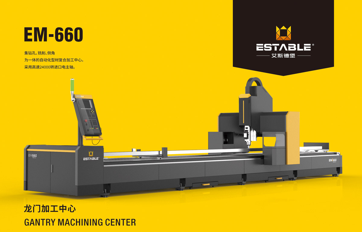 集钻孔、铣削、倒角为一体的自动化型材复合加工中心,广泛运用于铝幕墙门窗、家装定制型材、PVC材料等领域。